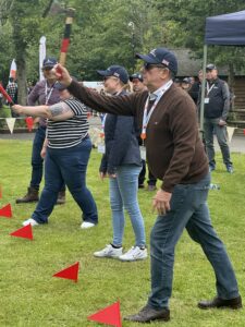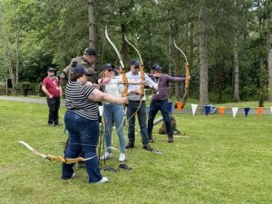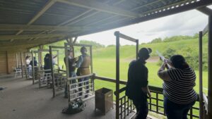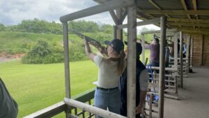 As well as a slap up lunch, they took part in clay pigeon shooting, archery and axe throwing at the E J Churchill Shooting ground in High Wycombe.